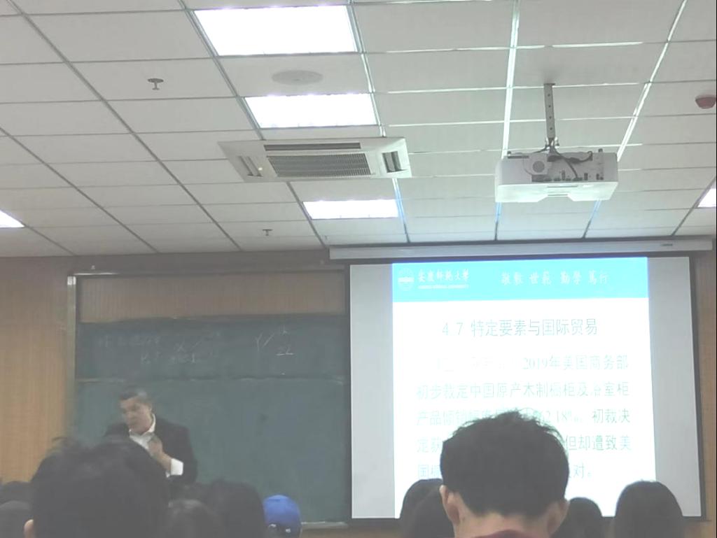2022年10月21日上午第3节于M212教室,国际经济与贸易教研室组织听评殷功利副教授讲授的《国际经济学》课,杨国才教授、张时玲副教授、丁玉龙博士、徐晓慧博士、汪颖颖老师、慈斌副教授、盛志鹏副教授等参与了听课。殷老师首先简要回顾了上节课的主要内容,然后重点讲解了特定要素模型的假设条件、生产可能性曲线、相对价格的变化对收入分配的影响,他通过模型推导、提问、讨论等方式向同学们进行授课。课堂组织严谨有序,互动积极,课堂气氛活跃,教学效果优良。