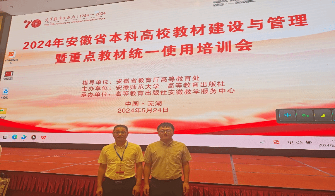 5月24日,由安徽省教育厅高等教育处指导、安徽师范大学和高等教育出版社主办、高等教育出版社安徽教学服务中心承办的2024年安徽省本科高校教材建设与管理暨重点教材统一使用培训会在安徽省芜湖市成功召开。我院教师吕有清、王天祥应邀参加了此次培训会。