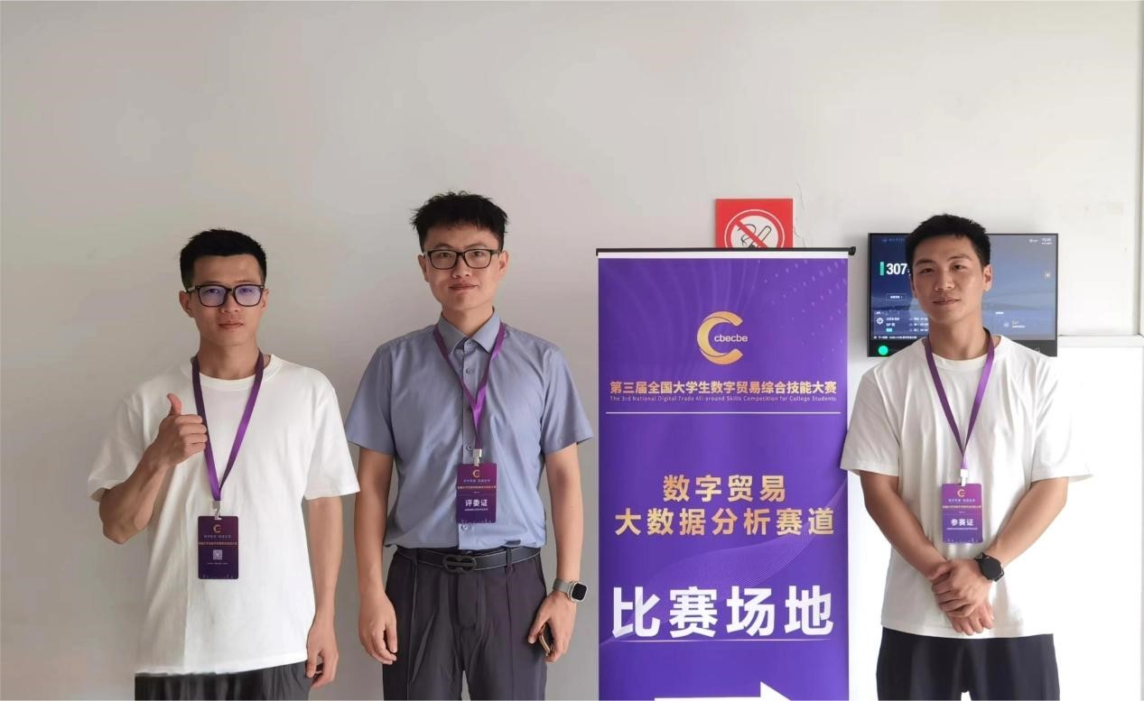 大赛自2月启动以来,受到社会各界的广泛关注,来自29个省、直辖市、自治区共527所高校的两万多名师生参赛。经过初赛和区域线下决赛的激烈角逐,潘锦云教授与学院2023级国际商务专业裘志鑫、王澎、汪冰琪三位研究生组成的团队在本次数字贸易大数据分析赛道(华东赛区)区域赛中荣获一等奖,并成功入围今年9月将于浙江杭州举行的全国总决赛。