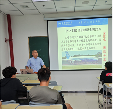9月10日上午,殷功利教授在M306教室为2025级国际商务硕士研究生讲授了一堂主题为“波音走经济全球化之路”的案例课。