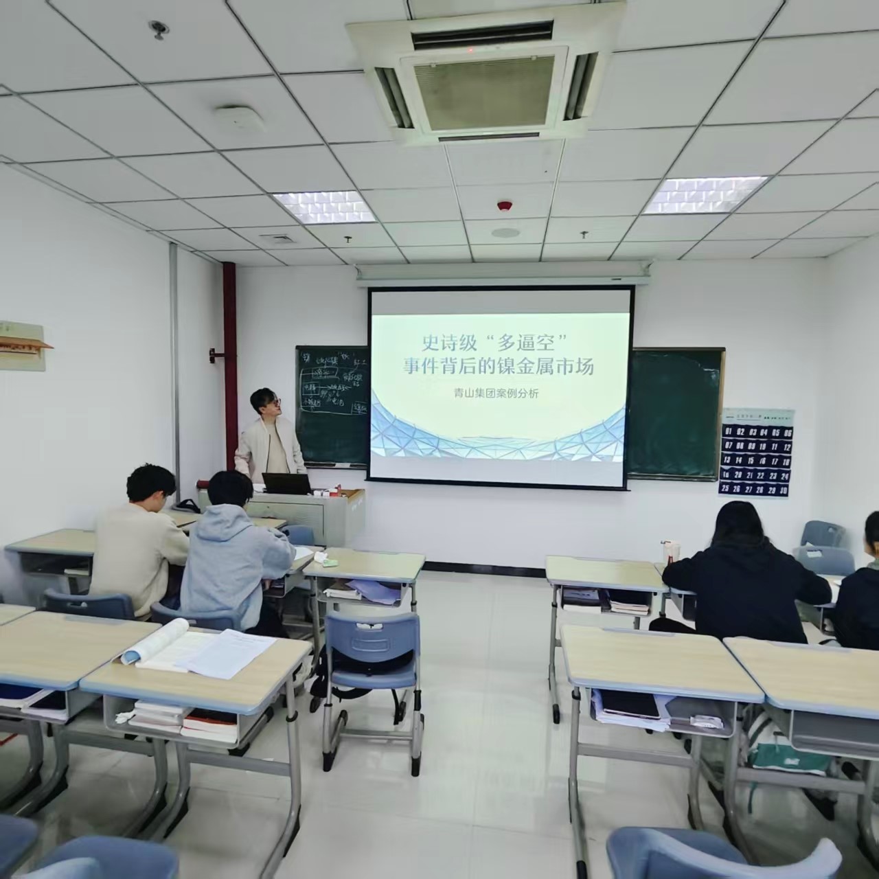 11月7日上午,王天祥博士在M306教室为2025级国际商务硕士研究生开展了一场以史诗级“多逼空”事件背后的镍金属市场为主题的案例研讨课。