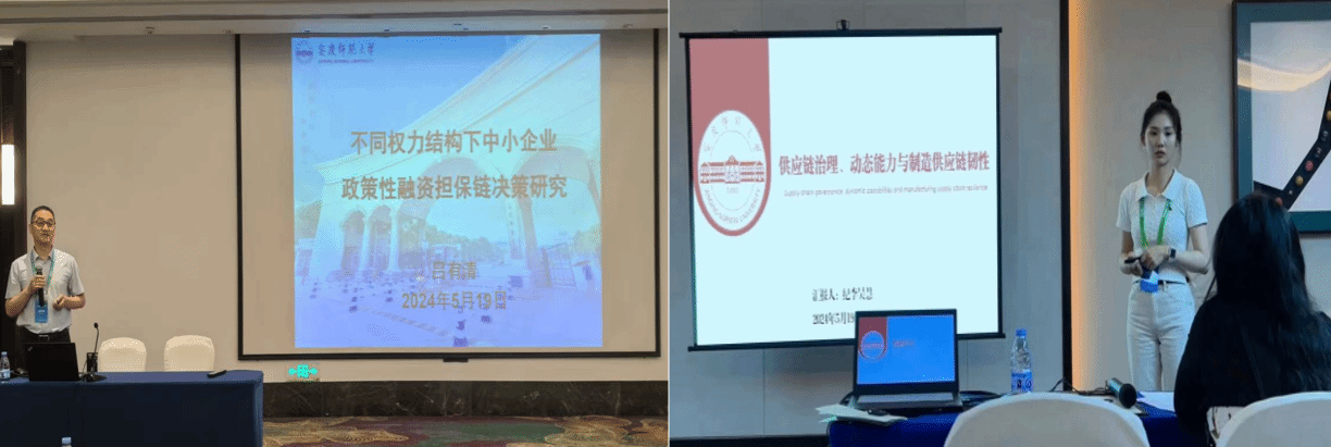 在分组报告环节,我院吕有清博士受邀担任“金融系统复杂性”报告组的主持人,并做了题为《不同权力结构下中小企业政策性融资担保链决策研究》的口头报告。同时,2022级统计学研究生纪李昊慧代表团队做了题为《供应链治理、动态能力与制造供应链韧性》的口头报告。与会专家高度肯定了我院师生的研究成果,并提出了进一步完善的相关意见。