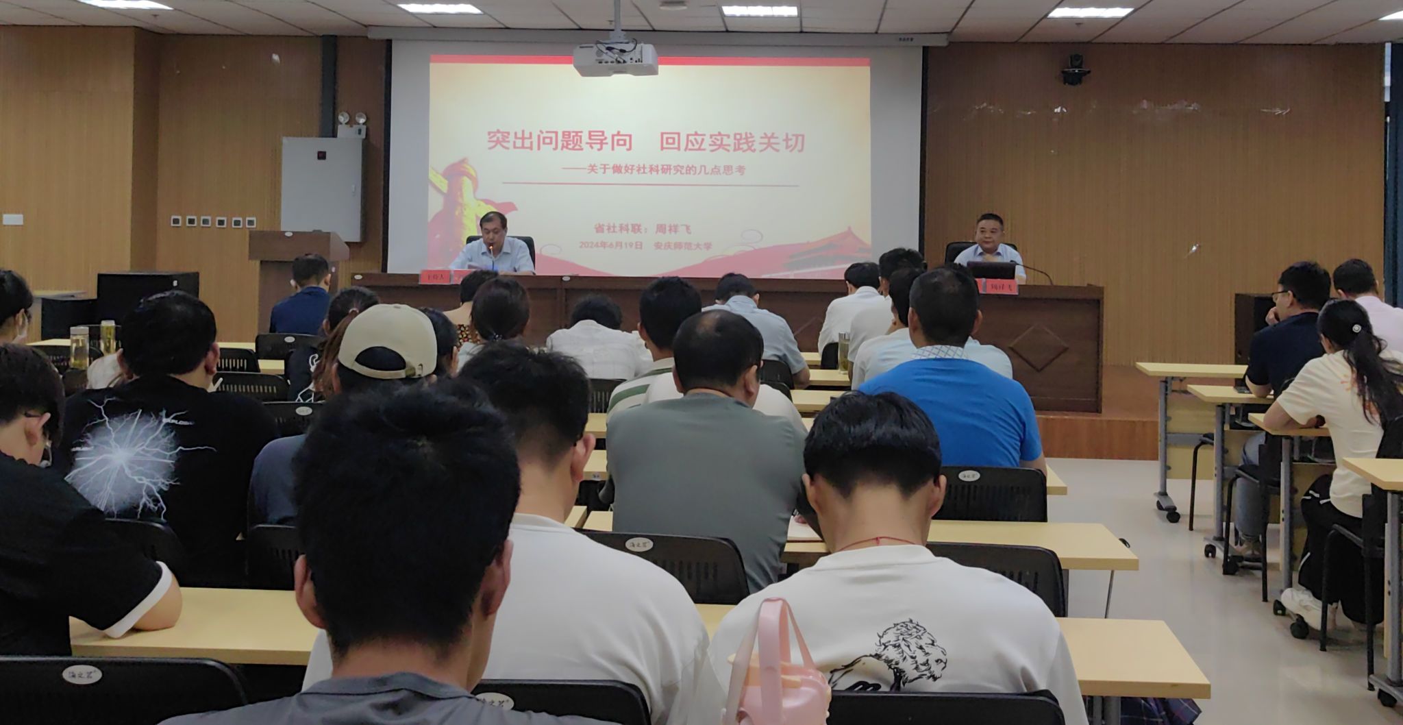 6月19日,安徽省社科联党组成员、副主席周祥飞应邀来到我院,并作题为《突出问题导向 回应实践关切——关于做好社科研究的几点思考》的报告。报告会由校党委常委、副校长刘友忠主持,学院党政班子、师生代表共计120余人参会。