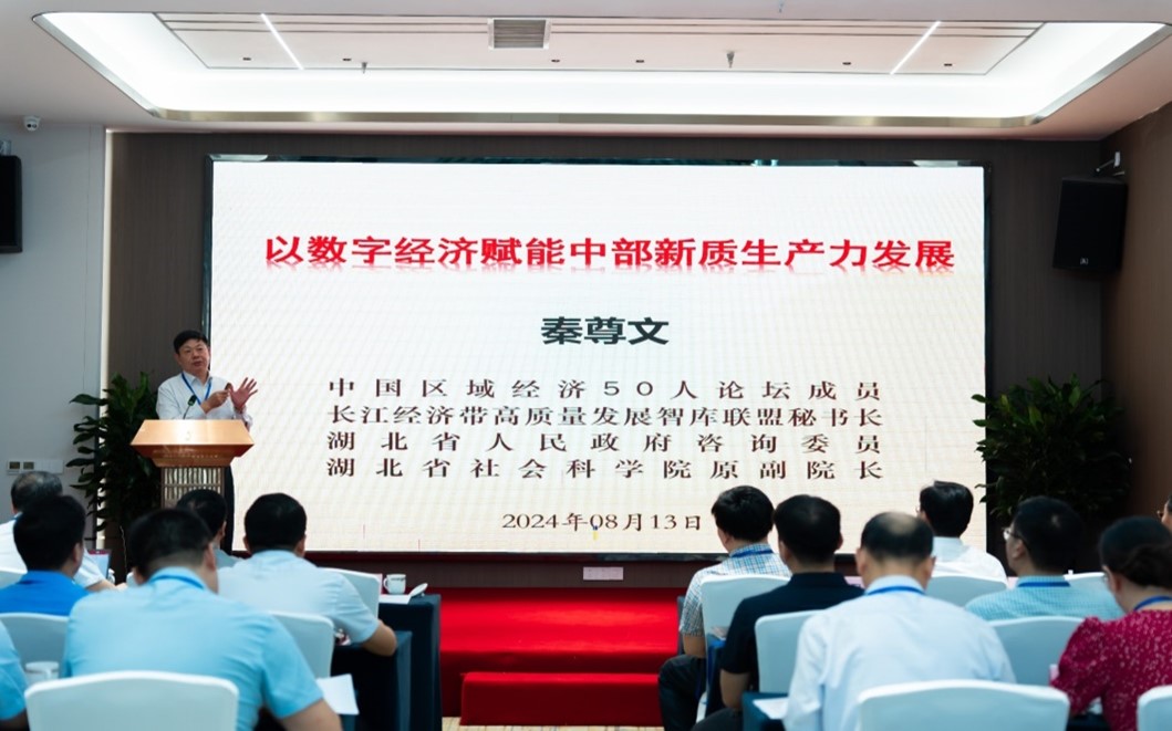 在主旨报告环节,中国城市经济学会副会长、湖北省社会科学院原副院长秦尊文研究员作了题为《以数字经济赋能中部新质生产力发展》的报告,他指出要学习贯彻习近平总书记关于发展新质生产力的系列重要论述,以科技创新推动产业创新,为中部崛起大力培养数字化人才,因地制宜推动数字化变革赋能中部新质生产力发展。
