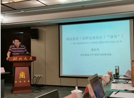 由农业农村部合作经济指导司主办、中国农科院农业经济与发展研究所承办的“深化农村宅基地制度改革专家研讨会”于2019年9月20-21日在北京举行,来自中国人民大学等国内知名高校的学者和农业农村部及地方农业主管部门领导共60多人参加了本次研讨会。会上,我院“乡村振兴与农村公共政策”科研创新团队负责人彭长生教授作了题为“确权促进了流转还是坚定了留传?——基于湘皖两省农户宅基地处置意愿的调查与思考”的学术报告,该报告基于城市化快速推进的背景,从宅基地传承的角度实证分析了农村宅基地确权的制度效应及其对农户宅基地处置意愿的影响,最后就乡村振兴战略背景下宅基地制度改革方向提出具体的政策建议,受到与会领导和专家的高度认可和关注。