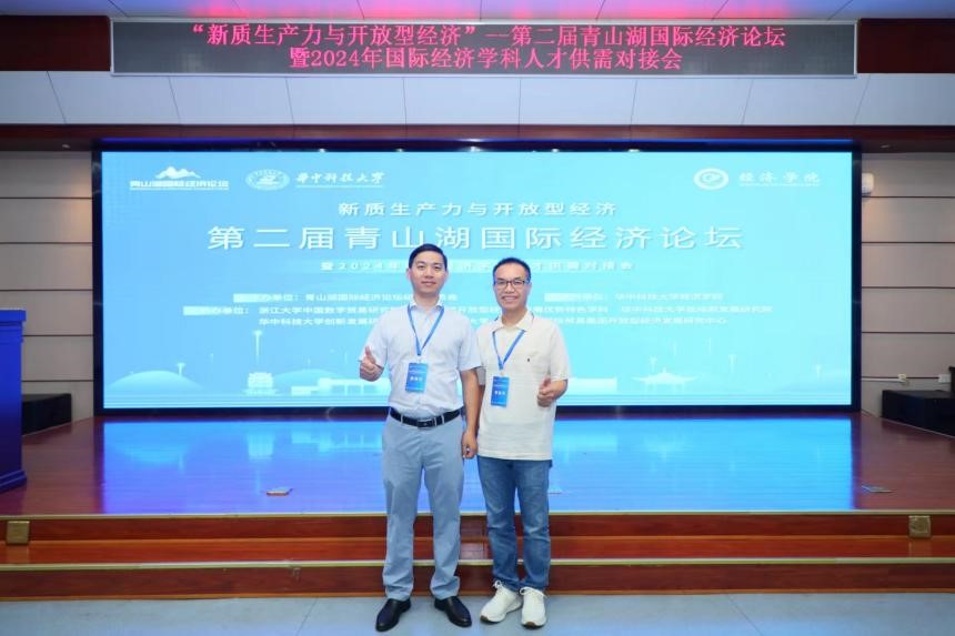 9月21日上午,第二届青山湖国际经济论坛暨2024年国际经济学科人才供需对接会开幕式在华中科技大学经济学院学术报告厅举行。本届论坛由青山湖国际经济论坛组织委员会主办,华中科技大学经济学院承办。来自140余所高校及相关单位的近300名代表相聚武汉,副院长徐俊杰教授与国际经济与贸易教研室李裕鸿副教授应邀参会并进行交流。