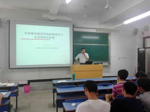5月26日下午,我院彭长生博士在C403举办了一场题为“农村集体建设用地政策演变与宅基地退出机制”的学术报告,财务管理2014级本科生、统计学研究生及部分教师到场聆听。