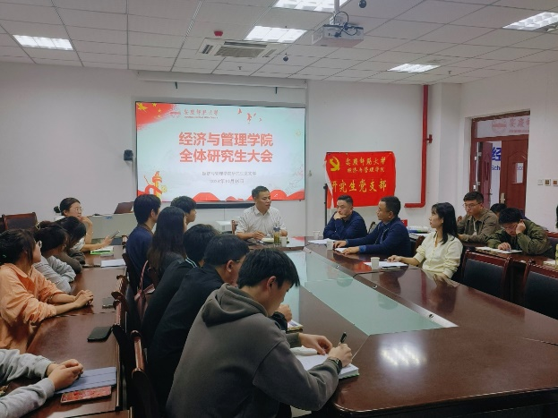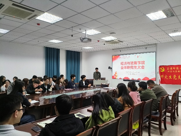 伟德国际victor·1946源自研究生党支部于10月16日下午在M-103召开了全体研究生大会。此次大会旨在充分了解同学们的需求与期望,增强集体凝聚力,促进研究生之间的学术交流,提升研究生综合素质,同时进一步发挥党支部的引领作用,提高学生的政治觉悟与思想认识,推进学院研究生教育工作的全面发展。学院副书记周毅、学院副院长梁培培、国际商务专硕学科负责人潘锦云和全体研究生参加,会议由学院研究生党支部书记、研究生辅导员李颖主持。