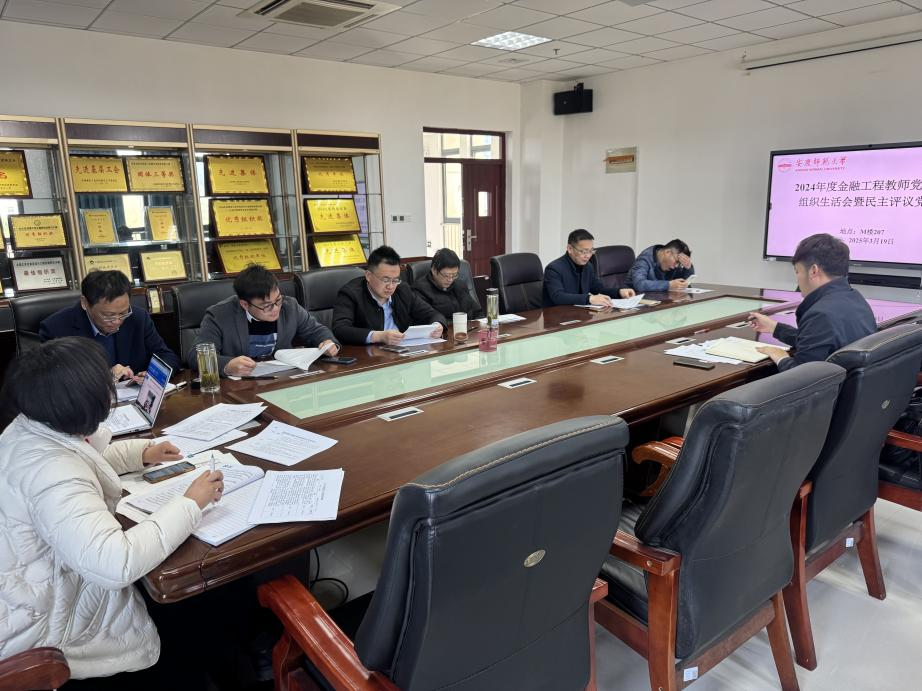 3月19日下午,金融工程教师党支部召开2024年度组织生活会暨民主评议党员会议。学院党委委员殷功利到会指导,支部书记张德亮主持会议,支部全体党员围绕自身存在的问题,深入开展对照检查,进行批评与自我批评,并开展党员民主评议。