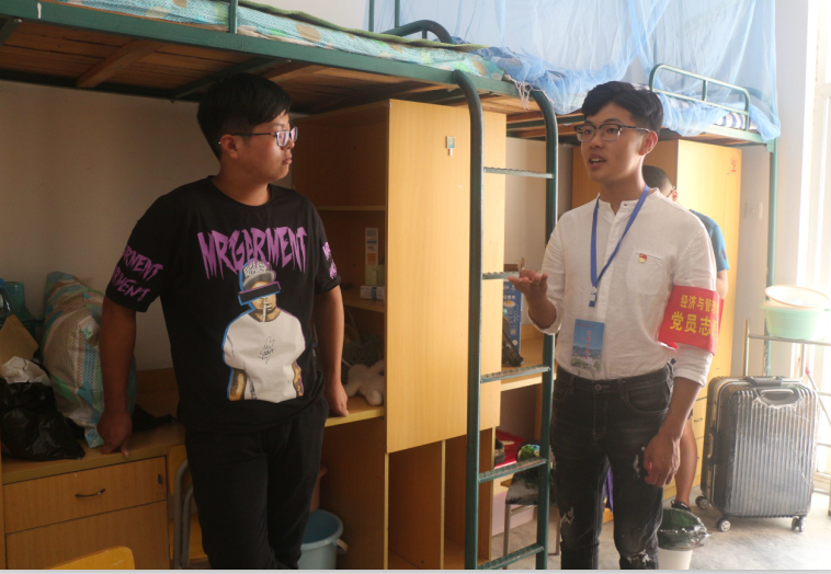 今年参加迎新志愿服务的学生党员大多是大四的同学,2015级财务管理专业的张旭东就是其中一位。在紧张的考研备考阶段,他依旧主动参加迎新志愿服务活动,他表示:“这是作为一名党员的义务,能够为学弟学妹们提供力所能及的帮助,很有成就感。”