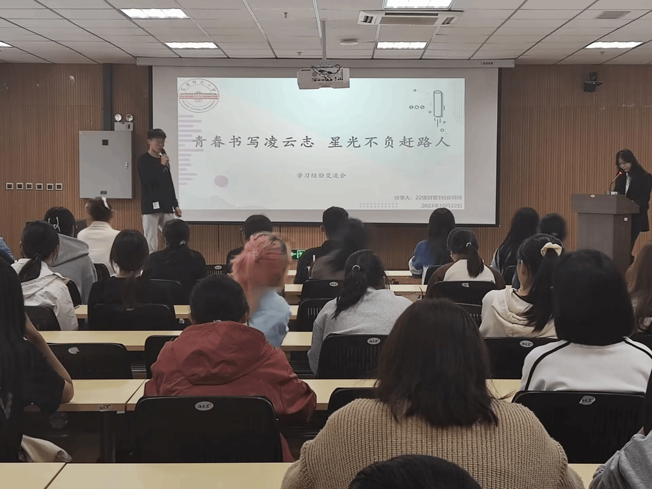 会上,2021级财务管理3班石玲、2022级财务管理3班崔晓峰、2022级市场营销陈姝含、2022级国际经济与贸易2班陈梦和2022级电子商务1班周德忠、2022级物流管理2班刘金泽从学习经验、技能提升、课余时间三个方面告诉新生需要制定学期目标、加强时间观念、充分利用资源、学会自主学习,建议同学们关注考证信息,多听讲座吸取经验,充分利用课余时间。