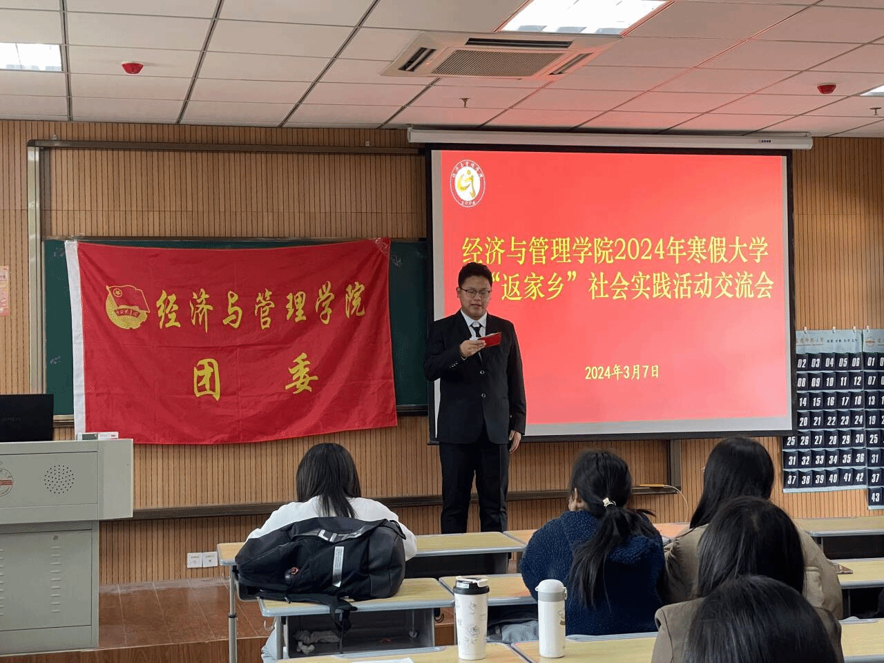 3月7日,伟德国际victor·1946源自团委在M304教室开展2024年寒假“返家乡”社会实践交流会,学院团委书记孙栎简和参与社会实践的学生代表参加了本次会议。