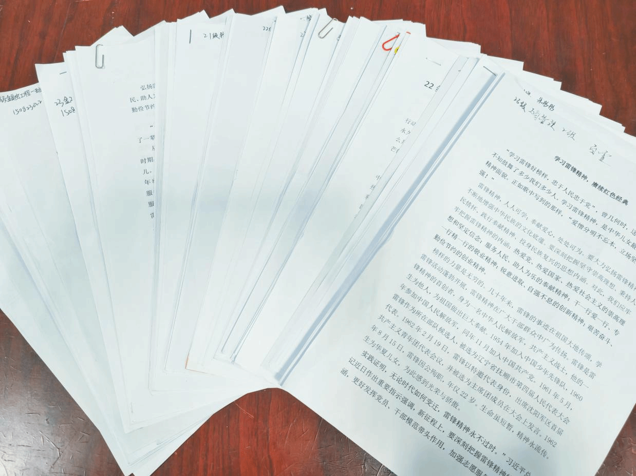 在征文活动中,同学们以笔墨为工具,精心描绘了一幅幅生动而深刻的雷锋精神画卷,用文字记录了一个个雷锋精神的感人故事。这些作品不仅展示了同学们对雷锋精神的深刻理解和敬仰,也传递了积极向上的价值观念和社会正能量。(撰稿:孙成成 李丽;摄影:操安馨;审核:周毅)