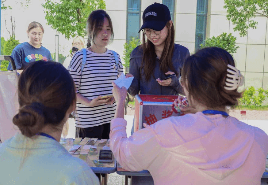 在“学赶帮超,锦囊妙计”环节,低年级同学们在锦囊中领取高年级同学分享的学习经验。工商管理专业2023(1)班的安姝萍同学领取到一名学姐的暖心妙计。“学会运用课本知识,重视输出,实践可以帮助我们更好地了解和掌握相关知识点。”她高兴地向同学展示这一锦囊,并表示自己未来将把这一妙计运用到学习中,不断提高自己的知识应用能力。