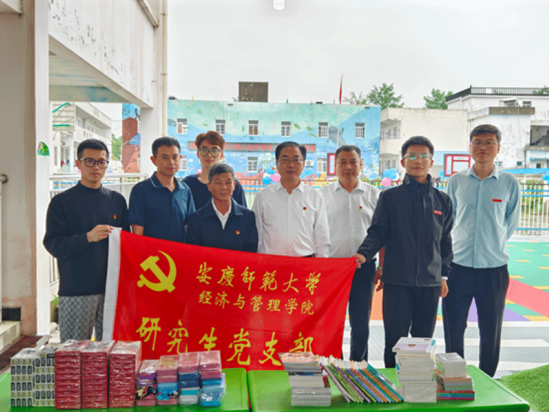 在国际商务专业校外研究生导师,潜山市河西村驻村第一书记汪传华的带领下,我院研究生党支部部分成员及研究生村播助农团队成员,于5月31日上午来到安庆市大观区海口镇镇江村,向当地的镇江小学的学生捐赠百余册图书及学习用品。