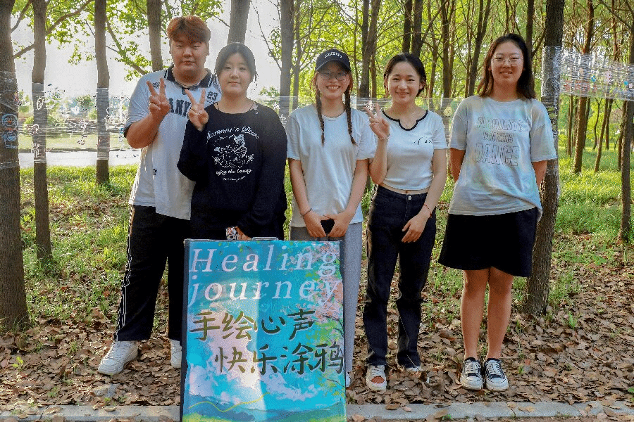 5月25日,伟德国际victor·1946源自2023级工商管理专业在M楼旁树林前举办以“手绘心声,快乐涂鸦”为主题的心理健康主题活动,活动吸引了120余名同学参与。