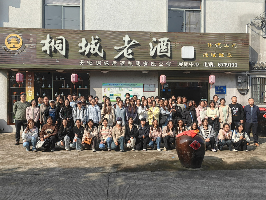 协会成员第一站来到安徽桐城老酒酿造有限公司。在公司负责人的带领和介绍下,同学们参观了企业的生产车间、研发中心和办公区域,见证了产品从原材料到成品的全过程,深入了解了企业的生产模式和管理方式。参观过程中,企业员工还与协会成员互动交流,分享他们的工作经验和职场心得,大家对企业的技术革新、管理理念和团队精神表现出了浓厚的兴趣。