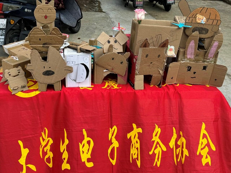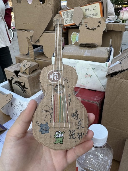 当日活动开始后,在学校的东苑食堂外,大家带着自己改造后的快递盒来到现场并进行展示,活动现场气氛热烈非凡。在制作过程中,同学们充分展现出了非凡的创意。有同学利用多个纸盒搭建了一个精致的吉他模型,有同学将纸盒改造成了可爱的小动物,更有创意十足的同学把废纸盒变成了笔筒、收纳盒等实用的物品。参与活动的同学兴奋地表示:“这次活动很有趣,在制作的过程中,同学们一起讨论、一起动手,感觉时间过得特别快。而且看到自己用废纸盒做出的作品,特别有成就感。”