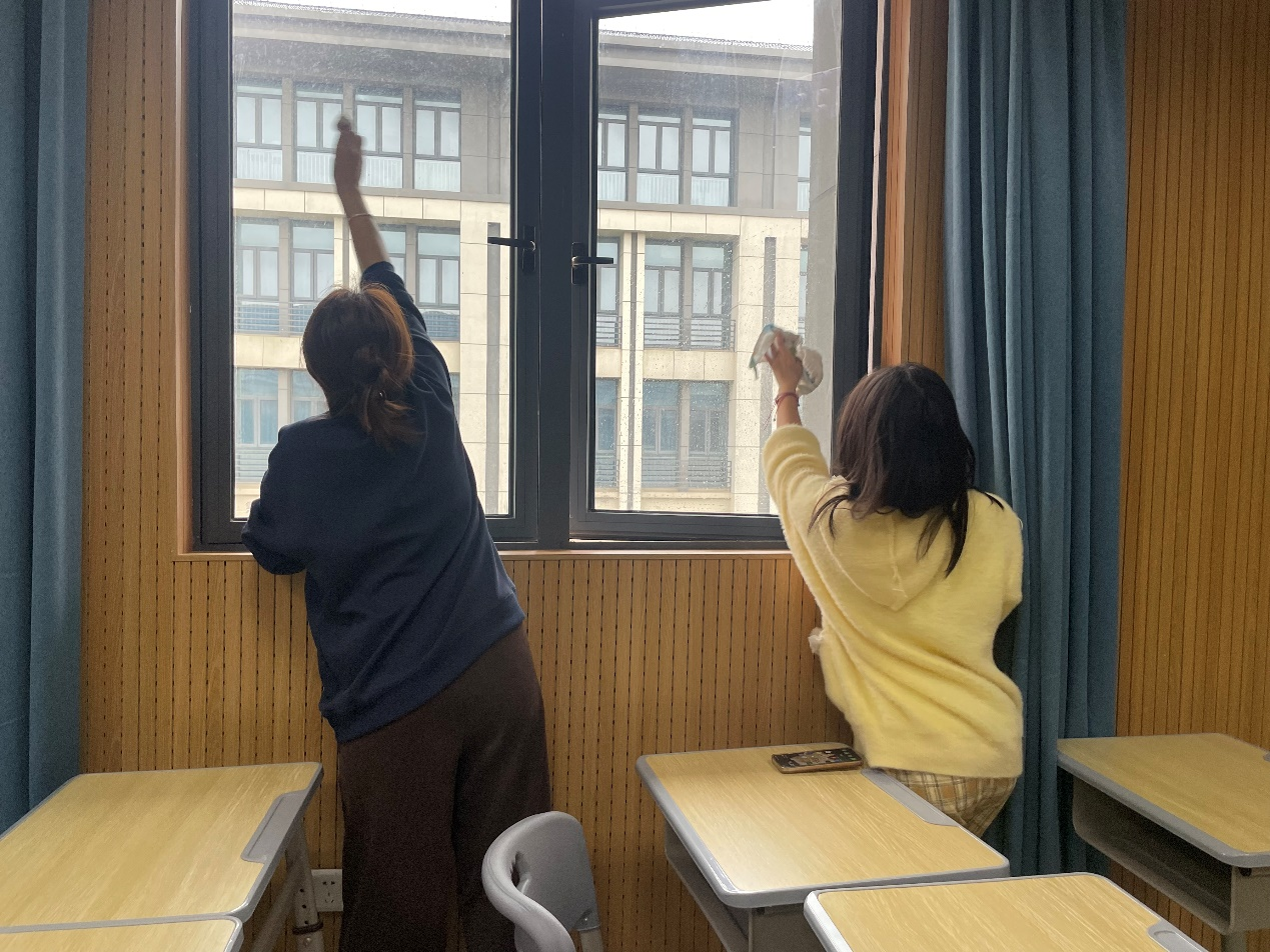 同学们先从楼道开始,仔细清理了楼道地面的纸屑、灰尘等杂物,再利用清洁剂擦拭楼梯扶手与楼道墙壁。楼道清扫结束后,同学们开始清扫教室,擦拭讲台、桌椅,并清理了教室地面垃圾和课桌抽屉里的废弃物。该活动的负责人生卫维权部部长叶子强同学表示,希望通过此次志愿活动,培养同学们的责任感,让大家体会到奉献的快乐。后期学院将组织更多类似的志愿活动,为同学们营造一个干净、整洁、温馨的学习环境。