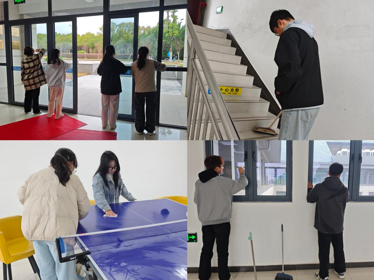 此外,在“我为同学做实事:教学楼清扫”活动中,同学们拿起扫把、抹布等工具,在学院教学楼开展全面的清扫工作。他们有序分组,对教室黑板、室内窗户内侧以及楼梯栏杆等进行了全面清扫。同学们齐心协力,共同完成了清洁任务,使学院环境焕然一新。