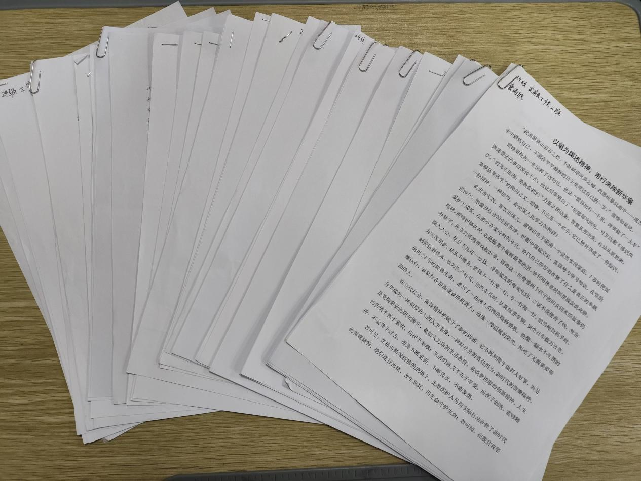 近日,学院开展以“赓续雷锋精神,笔绘时代华章”为主题的征文活动,旨在深入挖掘雷锋精神的时代内涵,引导同学们正确理解并践行雷锋精神,培养新时代青年的社会责任感与奉献精神。活动通过线上线下相结合的方式,面向学院全体同学广泛征集作品,得到了广大同学的热烈反响和积极参与。