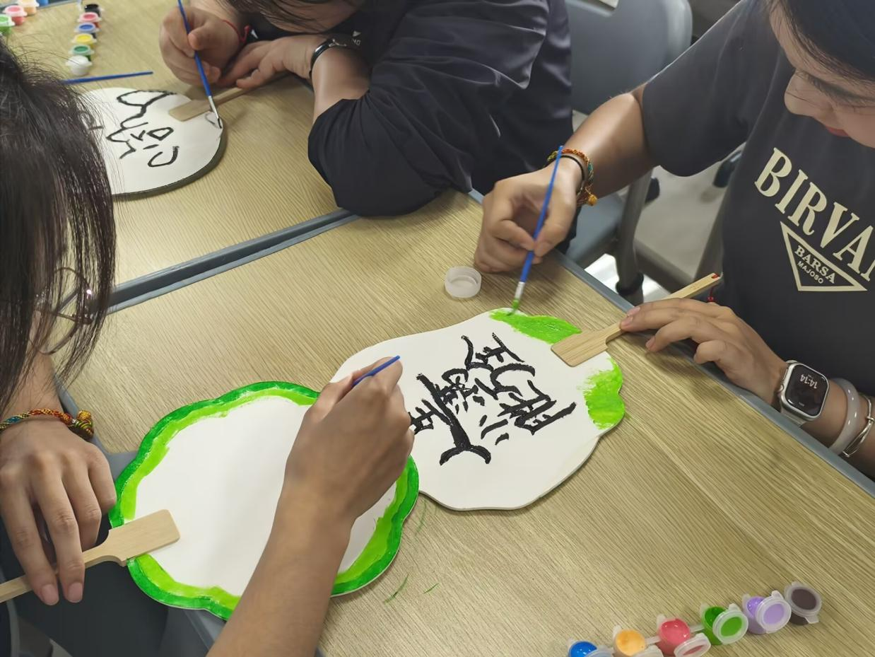 “妙手生花”创意手工活动同样精彩纷呈。活动现场,同学们领取漆扇绘制材料、扭扭棒等工具后,便全身心投入创作。有人精心调配染料,在扇面上勾勒出独特图案,赋予传统工艺新的活力;有人巧妙构思,用扭扭棒编织出萌趣造型,展现奇思妙想。制作过程中,大家相互交流创意、分享技巧,现场气氛热烈融洽。当一件件凝聚着智慧与心血的手工作品诞生时,同学们脸上洋溢着满满的成就感。此次活动让同学们近距离领略了手工艺术的独特魅力,有效提升了动手能力与审美水平。