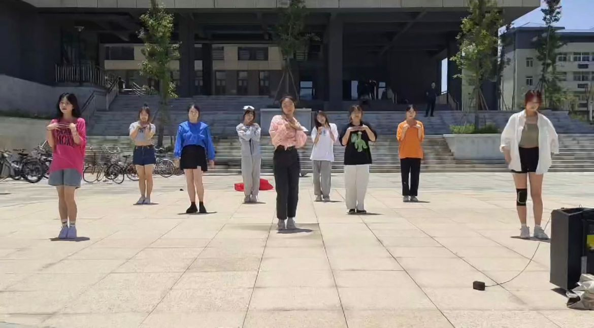 学院辅导员老师孙芮和王清也加入到队列中与学生们共同表演了一曲《爱你》,俏皮的动作、甜美的微笑让旁观者也不禁受到感染,脸上洋溢着笑容。舞蹈表演者、物流管理专业2020(2)班的张美琪同学表示,通过这次活动与老师一起排练表演,不仅跳舞很开心,而且还拉近了与老师之间的距离。“感谢老师们在期末考试即将到来之际以这种方式让我们很好地释放了压力!”