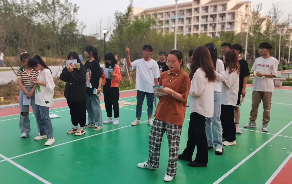 活动由你画我猜、顺口溜挑战赛、撕名牌、录制合唱视频四部分组成。在你画我猜的游戏中,比划的同学表演得惟妙惟肖,猜题的同学绞尽脑汁猜想答案;顺口溜挑战赛中同学们错误百出,欢声笑语声不断;撕名牌活动中,同学们想尽各种方法逃脱,男女生进行各种对抗,随着游戏的进行,大家已经不再局限于那一方场地,开始满场狂奔,笑声响彻云霄,气氛逐渐到达高潮;最后的视频合唱环节,同学们以“夜空中最亮的星”、“孤勇者”等歌曲向疫情当下所有的奉献者表示衷心的感谢。
