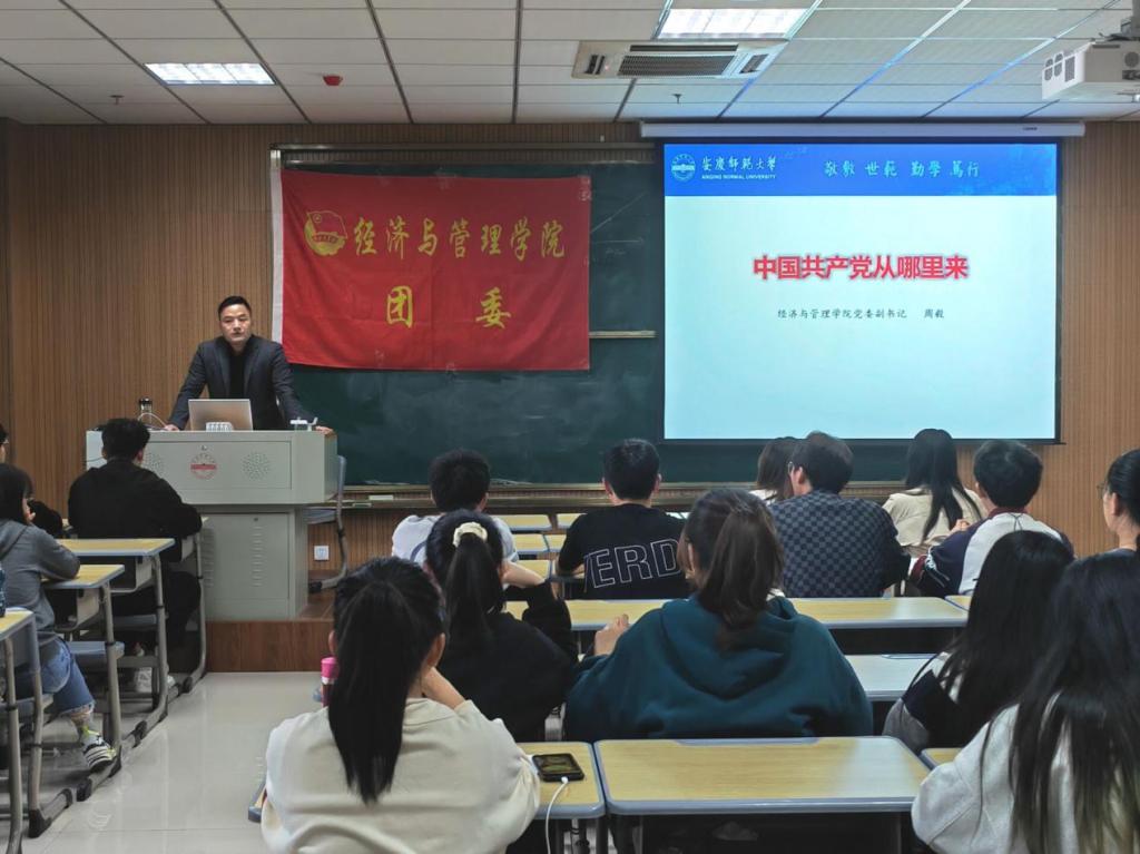 4月13日下午,伟德国际victor·1946源自在M304教室以“中国共产党从哪里来”为主题举办宣讲会。学院第三期“青马班”全体学员和2021级各班团支书共66人参加了宣讲,学院党委副书记周毅担任主讲。