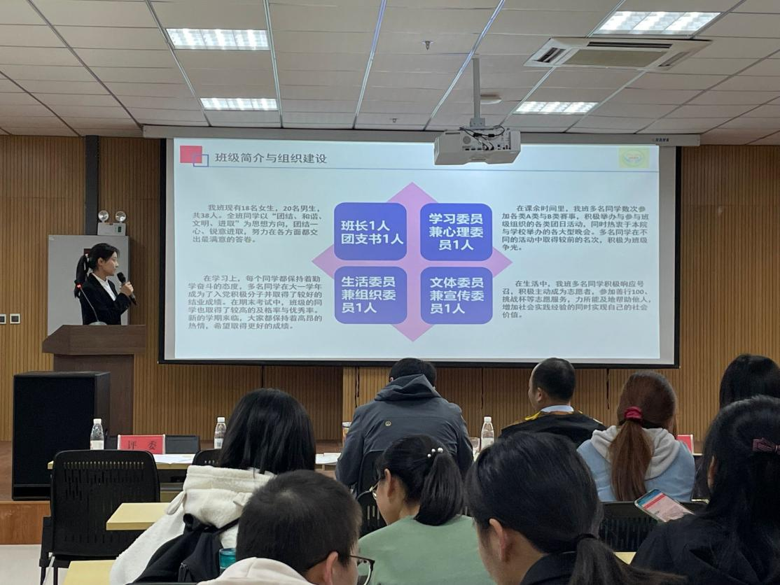 各参评班级分别从团组织建设、思想建设、党团活动、日常管理、思想教育活动、学风建设、校园文化活动、精神文明创建、信息化建设、创新工作等10方面介绍各自班级的风采。彰显出各班级团结向上的班风,深厚的文化底蕴以及强大的班级凝聚力。活动最后,评委老师洪亮上台针对各班级汇报的情况进行了总结和点评,并指出各班级汇报的特色地方和不足之处,强调了“重在平时”的重要性,希望各班级能能进一步的提高与发展。