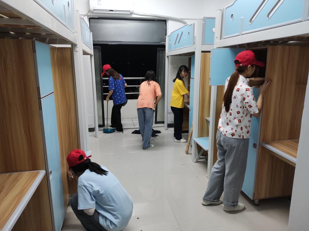 志愿者们明确了各自的责任区域后,迅速投入到有序的清扫工作之中。大家有条不紊地打扫,从洗手间的边边角角到桌子、床铺底下,任何一个角落也不放过,致力做到全面整洁,窗明几净。清洁过后的宿舍焕然一新,干净温馨中充满着学长学姐对新同学们的关心与期盼。