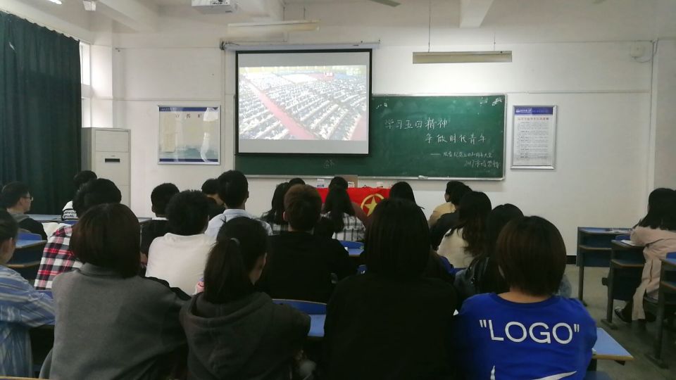 由班级团支书播放纪念五四运动100周年大会视频,全体成员集中观看学习。观看后,支部书记就此视频提出,习近平总书记在大会上高度评价了五四运动的历史意义、深情寄语当代青年、提出党旗所指就是团旗所指三个方面的内容。
