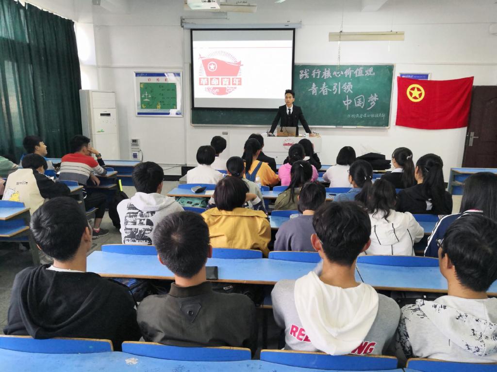 为了积极培育和践行社会主义核心价值观,让广大青年学生树立坚定的理想信念。10月31日下午,2018级物管二班团支部在文溯楼504教室开展了“践行社会主义核心价值观,青春引领中国梦"的主题团日活动”学院团委兼职副书记贺卫老师和全体团支部成员参加活动。