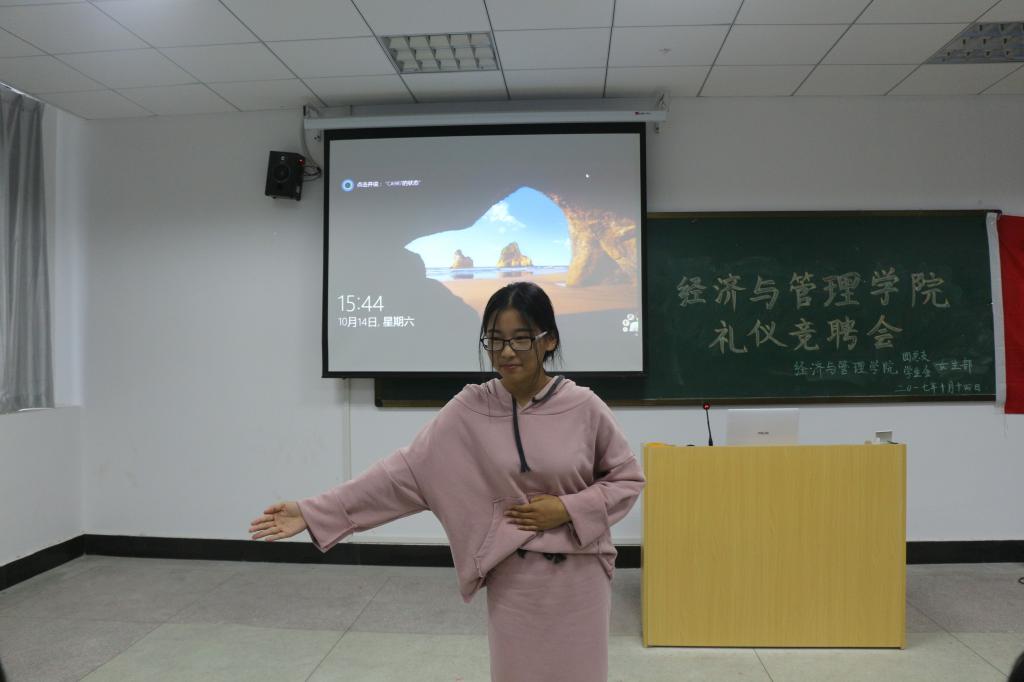 10月14日,伟德国际victor·1946源自在E405教室举办礼仪竞聘会。院学生会主席阚梦洁,院学生会副主席李慧、陈露、江浩,礼仪队队长徐慧君,礼仪队往届成员朱世芳出席并担任本次竞聘会评委,主持人马慧宽。