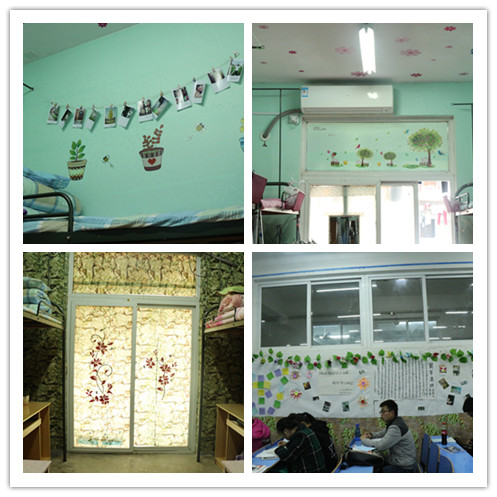 “一屋温馨,一室友情。”是1B519寝室的寝室标语。从正门到阳台,随处可见用心的手工挂件,无一不彰显着寝室内四名成员的青春活力,共性与个性的结合让其荣获一等奖;2A211寝室整体以绿色为主,突出环保意识获得最佳环保奖。