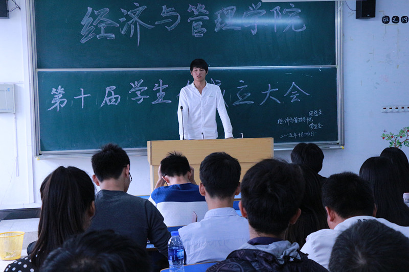 学生会主席杨健在大会上分享了自己的一些心得体会,并希望全体学生会成员能够明确职责,树立良好的工作作风,将学院学生会各项工作推向新台阶。(汪天纯)