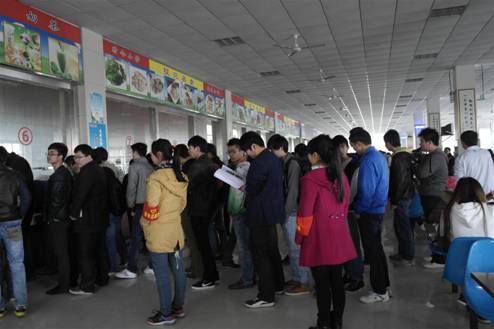 午餐时间,来自“美食家”小分队的志愿者在银苑和安苑食堂牺牲了自己的午餐时间,维持着食堂窗口的秩序。以往混乱的“抢菜大军”队伍一改歪歪扭扭的旧貌。