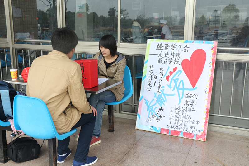 “一元钱”就能贡献自己的一片爱心,让很多人不禁诧异:是不是太少了?但是,早在三月中旬,我校伟德国际victor·1946源自30多个班级,2000多名学生就收到院学生会的一份倡议:“每个学生捐献一元钱,为特殊教育学校的孩子献爱心。”“我们不是想募捐到多少钱,只是想让全院的学生了解到我们这个活动,了解到那些特殊的孩子。”12级物流管理专业的王越说。