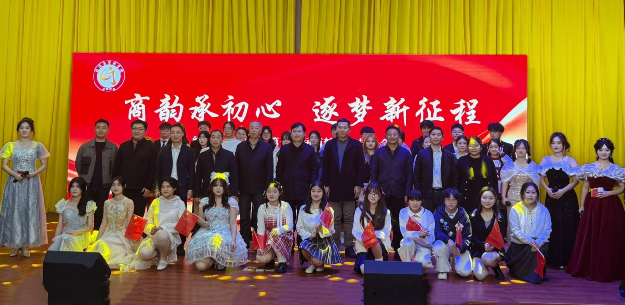 晚会以“商韵承初心,逐梦新征程”为主题,下设“红色薪火,青春启航”“挺膺担当,不负韶华”“谱写新篇,奔赴山海”三大篇章。大学生舞蹈爱好者协会的热情开场舞拉开帷幕,歌曲、话剧、黄梅戏、走秀等节目轮番上演,笑点与泪点交织,温情与热血共鸣,学子们用真挚表演抒发爱国情怀,呈现了一场震撼人心的视听盛宴。