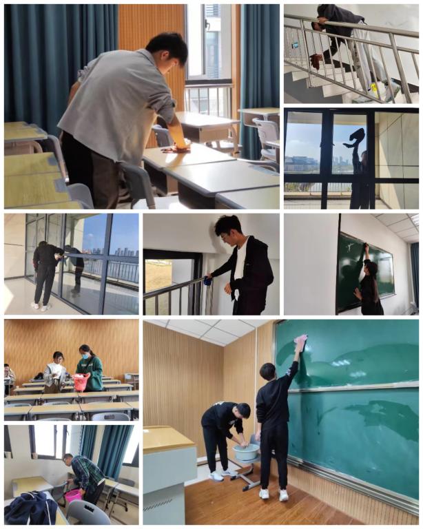 10月26日下午,来自各个专业的同学们在M楼集合,按照活动前期任务分配,四人一组由各小组长带领前往各个教学楼开展清扫活动。同学们干劲十足,现场气氛活跃,各个小组带着清洁工具在划好的区域清扫灰尘。负责教室的同学不仅将教室的黑板擦干净,还主动将布满灰尘的讲台收拾干净,为老师们提供一个干净的教学平台。对于桌椅凌乱的教室,同学们齐心协力将桌椅摆放整齐,并将抽屉内的垃圾倒入垃圾桶内,让上课的同学们能够有一个整洁的学习环境。