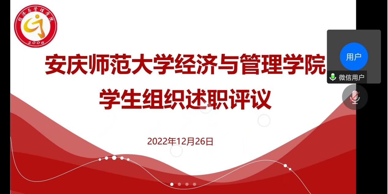12月26日,伟德国际victor·1946源自线上召开2022年度学生组织述职评议会议。学院党委副书记周毅、团委负责人、团委兼职副书记、各学生社团指导教师以及相关学生干部共20余人参加会议。