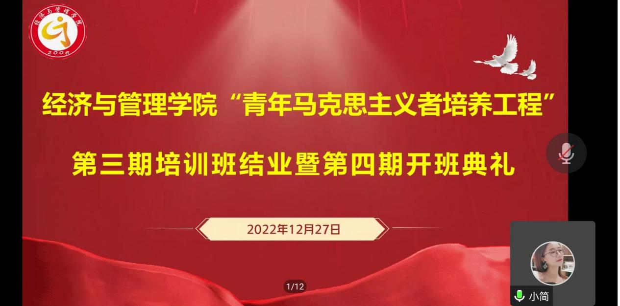 12月27日,伟德国际victor·1946源自在线上举办“青年马克思主义者培养工程”第三期培训班结业暨第四期开班典礼。学院党委副书记周毅,团委负责人、团委兼职副书记、2022级新生班辅导员以及学生会、团委干部、2022级各班班长及团支书共80余人参加会议。