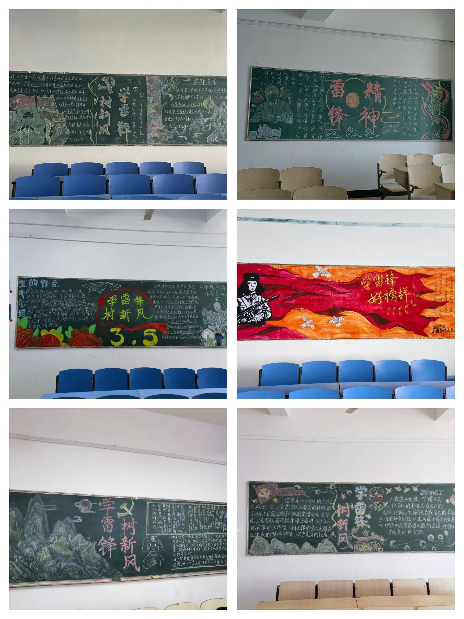 本次主题板报活动得到了各班级的积极响应,同学们针对主题,认真查阅相关资料,精心设计板报。各班通过独特新颖的版面设计、丰富的内容叙述、精美的图片等多种方式充分展现了雷锋同志的光辉形象。鲜艳的色彩渲染着同学们学习雷锋的热情,细腻的文字包含了同学们对雷锋精神的高度认同。一幅幅精美的板报,不仅装点了班级的读书环境,也营造了学习雷锋精神的浓厚氛围。通过比赛,同学们也进一步加深了对雷锋精神的理解和向雷锋学习的决心。