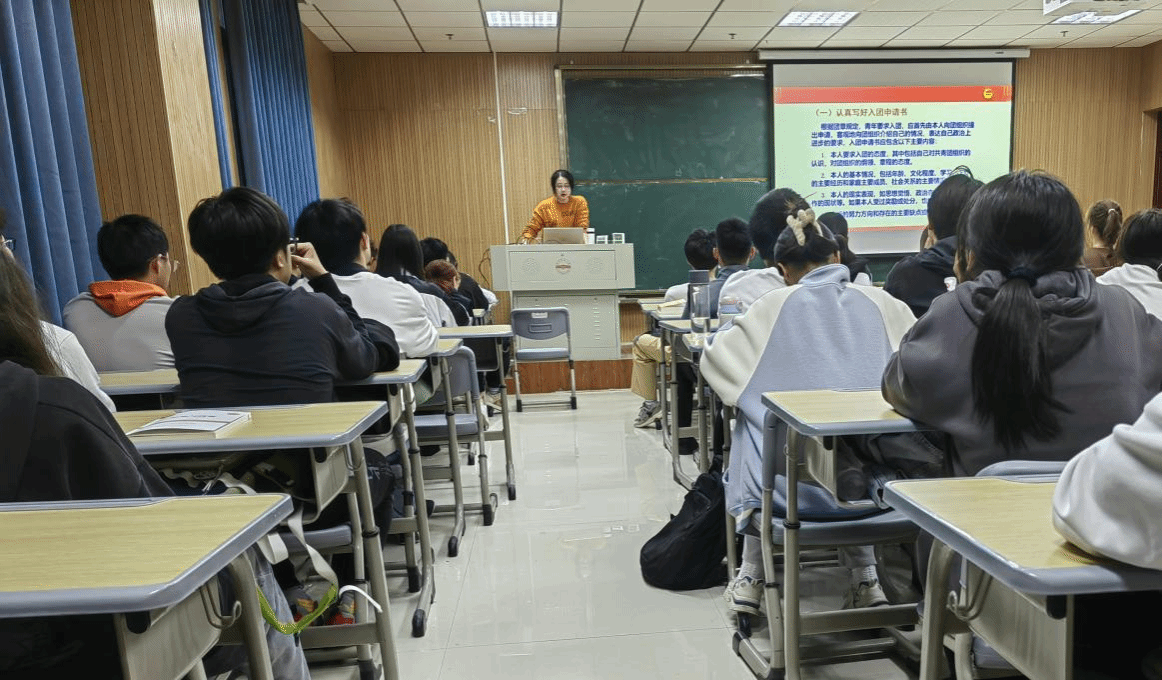 孙栎简从共青团组织、共青团的象征和标志、入团条件、三会两制一课以及学院的团日活动五个方面向同学们介绍了基础团务。