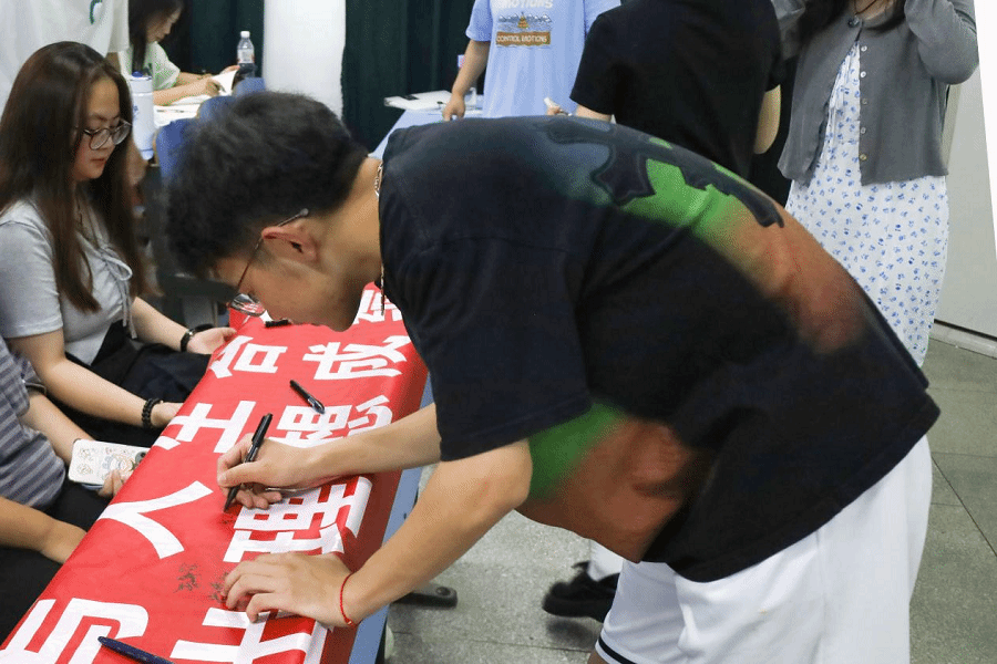 在诚信签名环节,同学们在印有“用诚信谱写人生答卷,凭实力考出理想成绩”的横幅上签名。大家依次在横幅上签下自己的名字,纷纷表示:“面对即将到来的期末考试,将会努力复习各项课程,做到认真备考,争取考出理想的成绩!”