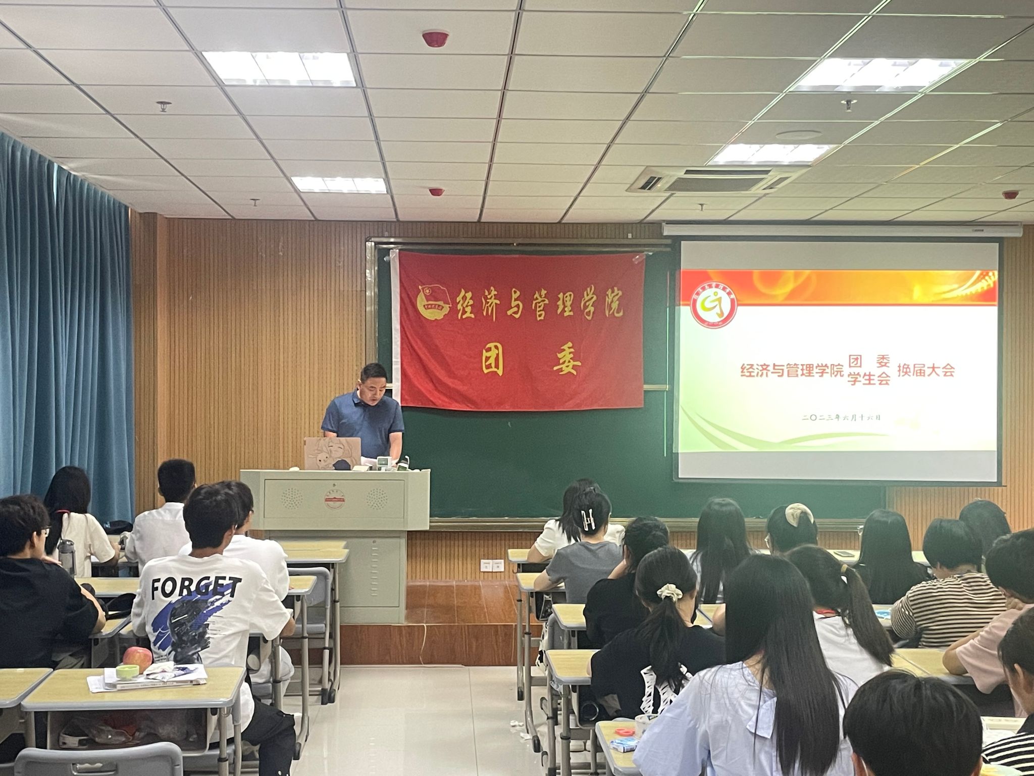 周毅充分肯定了一年以来学院团学工作所取得的突出成绩,并代表学院向过去一年的团委学生会工作致以诚挚的问候和感谢,对新一届竞选的学生干部提出了期望和要求,希望大家能够立足岗位、履职尽责,始终以学院工作为落脚点,把为师生服务放在首要位置,广泛听取学生意见和建议,不断提高大局意识和集体观念,持续增强服务意识和专业素质,为学院团学工作贡献青春力量与智慧。