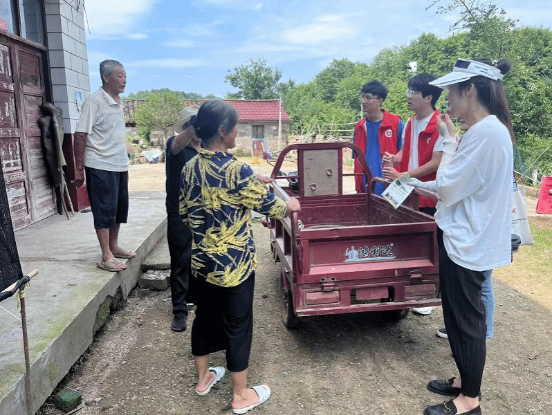 随后,在方向的引领下,实践团成员走入了当地村民家中,与村民进行油菜基地种植技术的交流。在走访过程中,实践团成员发现村内大塘和小型水库有十多处,所以在与村民的交谈中,实践团成员也宣传了防溺水安全教育的问题,提出要树立安全意识,加强自我保护,不走河边沟沿。同时也给出了相关溺水时自救的方法,为村民普及防溺水知识。