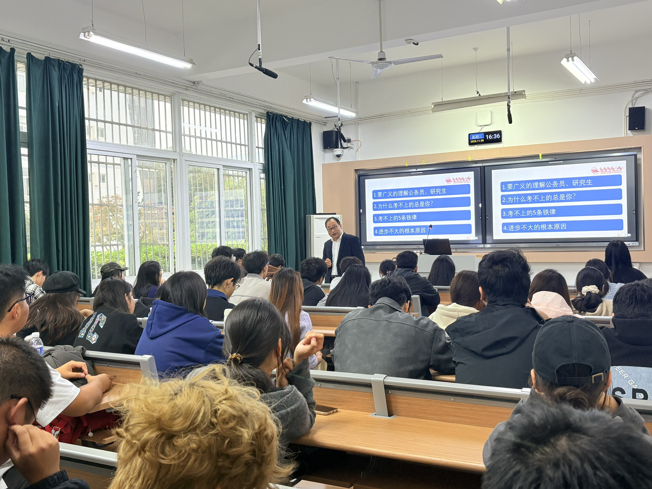 本次讲座内容兼具权威性与实用性,不仅为学生提供了专业的政策解读,更分享了科学高效的备考方法。针对同学们普遍存在的备考焦虑问题,甄德云老师通过经验分享与心理疏导,有效缓解了大家的心理压力,进一步增强了学子们冲刺考公的信心与决心。参会同学纷纷表示,此次讲座干货满满,成功解决了自己在备考过程中遇到的诸多困惑,让未来的考公之路更加清晰明确。
