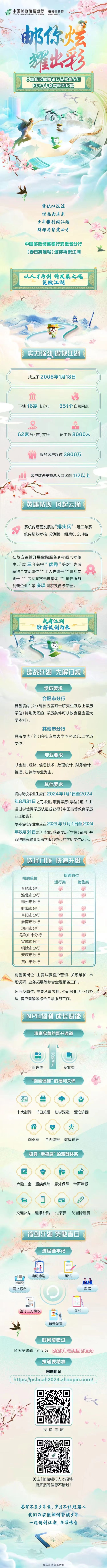 邮储银行2024年春季校园招聘金融工程、财务管理专业学生