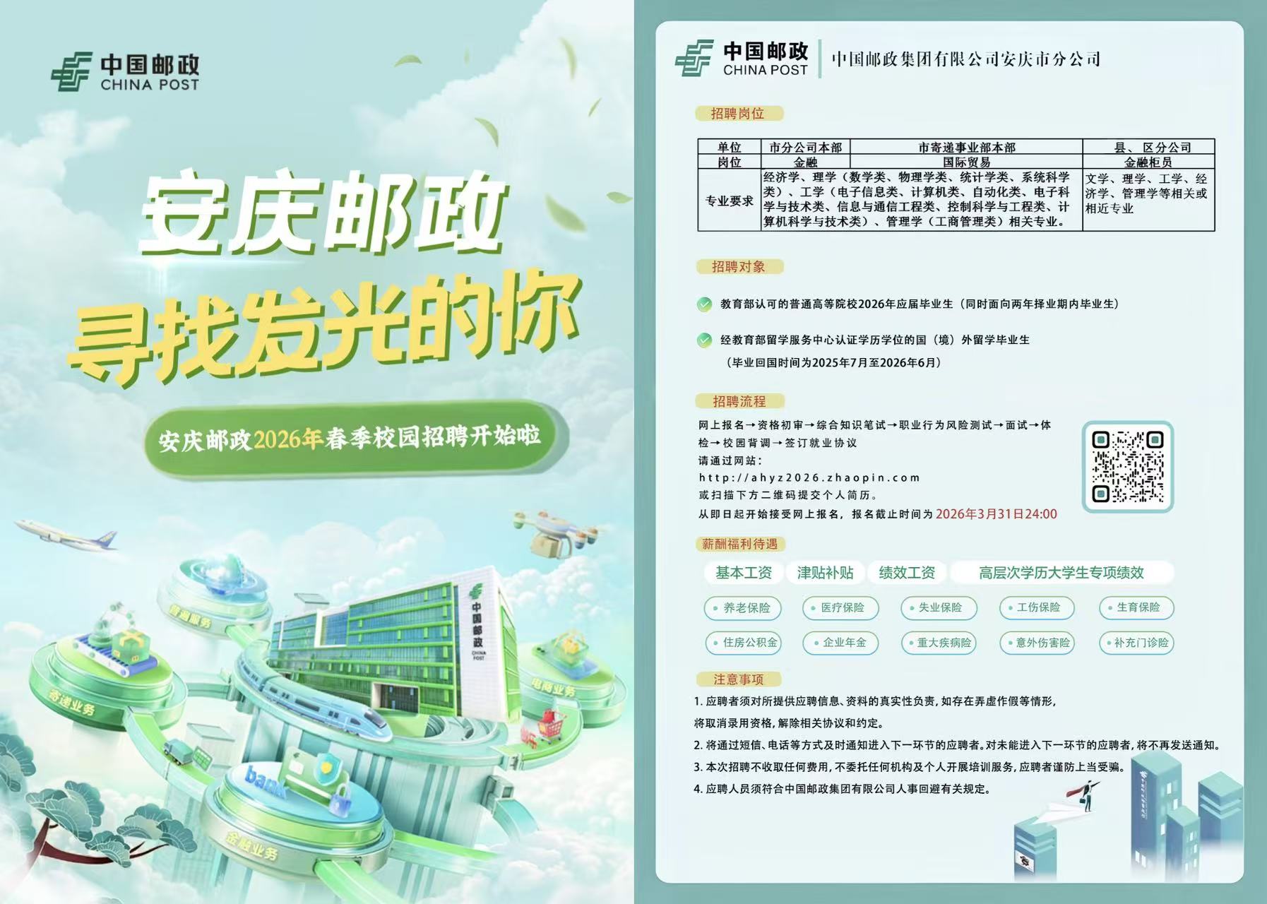 安庆邮政2026年春季校园招聘金融、国际贸易岗位